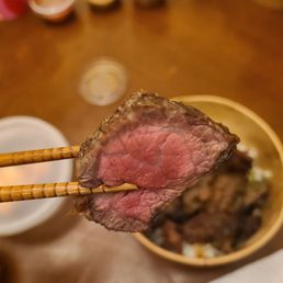 In a world filled with mediocrity, COTE Steakhouse is a beacon of hope. And well deserving of it's Michelin star rating. You feel a sense of exclusivity as you walk into the establishment, and are greeted by low lights, chic vibes, and attentive hosts. I mean it is quite difficult to get a reservation so the whole aura is fitting. FYI COTE is meant to seat parties of 4 preferably so seating for 2 is not ideal. However, they use their first and last seating to accommodate. I sent my wife in earlier while I looked for a park and she was taken to the bar and given a delicious cocktail. Impressive since many restaurants will have you waiting until the entire party has arrived. The food, the food, the food. Impeccable from start to finish. We went with the intent of ordering the butcher's feast (USDA Prime & Wagyu Beef) and it did NOT disappoint. We voiced to the waiter/cook that it was our first time and he was very detailed. As what cut we were eating, what part of the cow, how it should be cooked, how it should be eaten, and with what it should be paired with detailed! Listen, it was a FULL experience. And I was HERE for it. All in all. I will be back. And for the steak omakase. What's that? How about you book a reservation, find out and then tell me. *snickers*